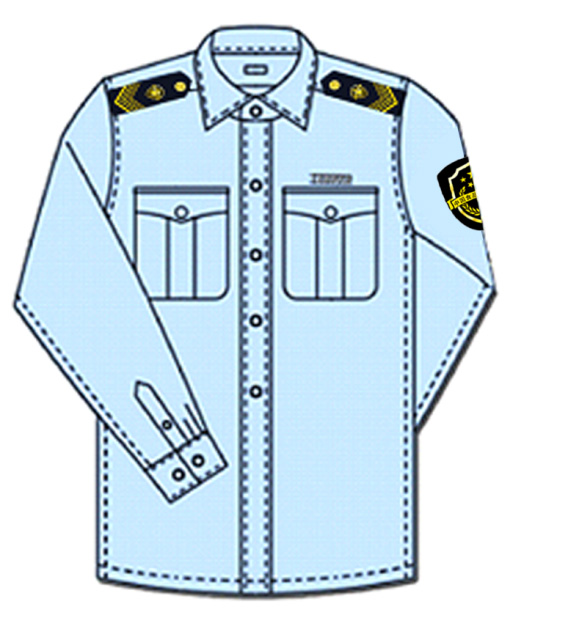說明:襯衫為滌棉混紡面料,顏色為深藍(lán)色,短袖襯衫為小翻領(lǐng),單排四???,兩個(gè)明口袋。長袖襯衫為豎領(lǐng),單排五???,兩個(gè)明口袋;西服簡褲或裙子為毛滌混紡面料。